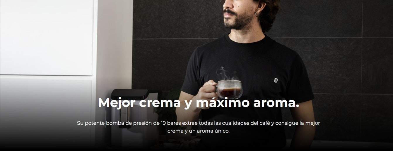 - Crema y aroma únicos: con su bomba de presión de 19 bares la cafetera consigue la mejor crema y el máximo aroma en cada café.