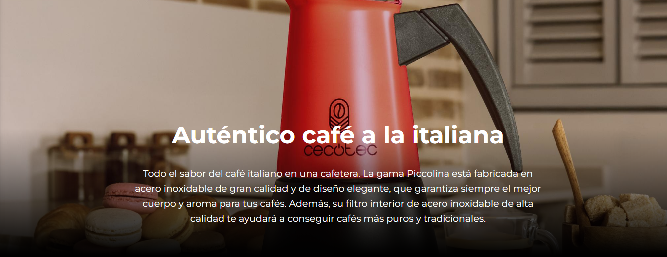 Todo el sabor del café italiano en una cafetera. La gama Piccolina está fabricada en acero inoxidable de gran calidad y es apta para cocina de gas, eléctrica, inducción y vitrocerámica.