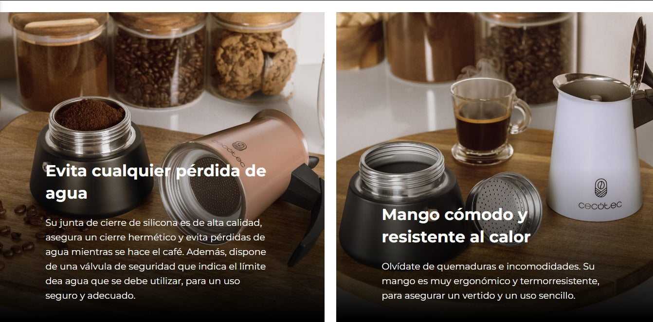 Elegancia y calidad: cafetera italiana fabricada en acero inoxidable de gran calidad y de diseño elegante, para hacer el café con el mejor cuerpo y aroma.