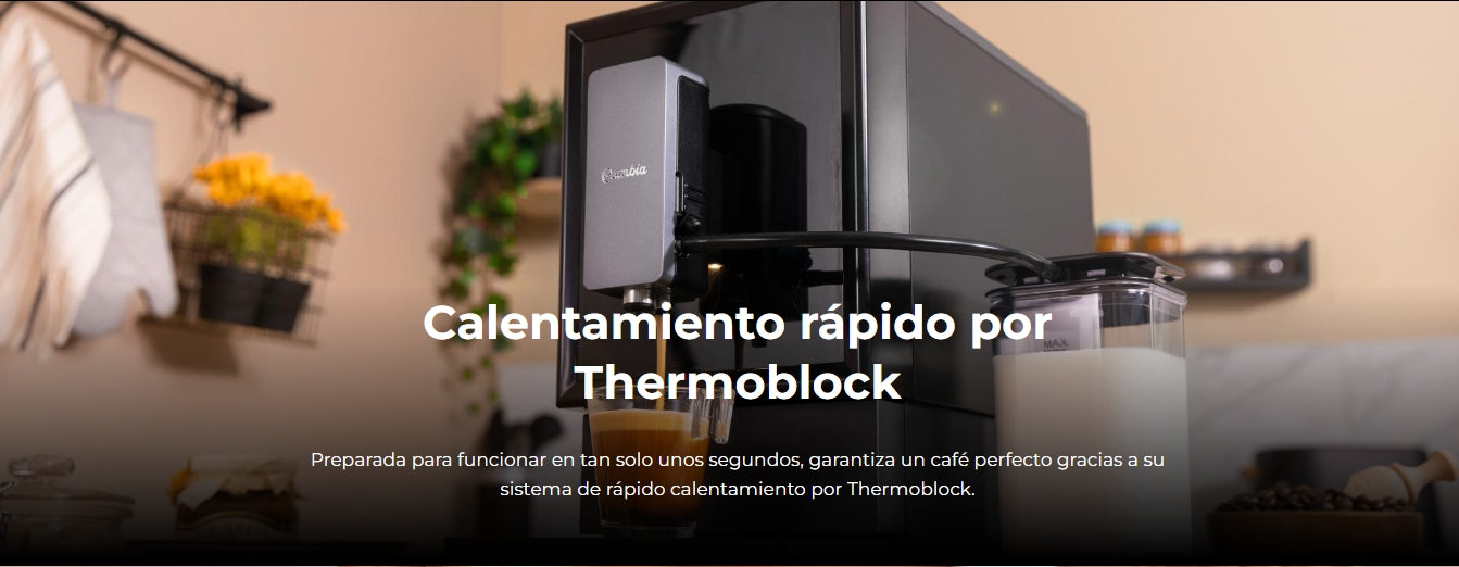 - Sistema de rápido calentamiento por Thermoblock que garantiza un café perfecto en tan solo unos segundos.