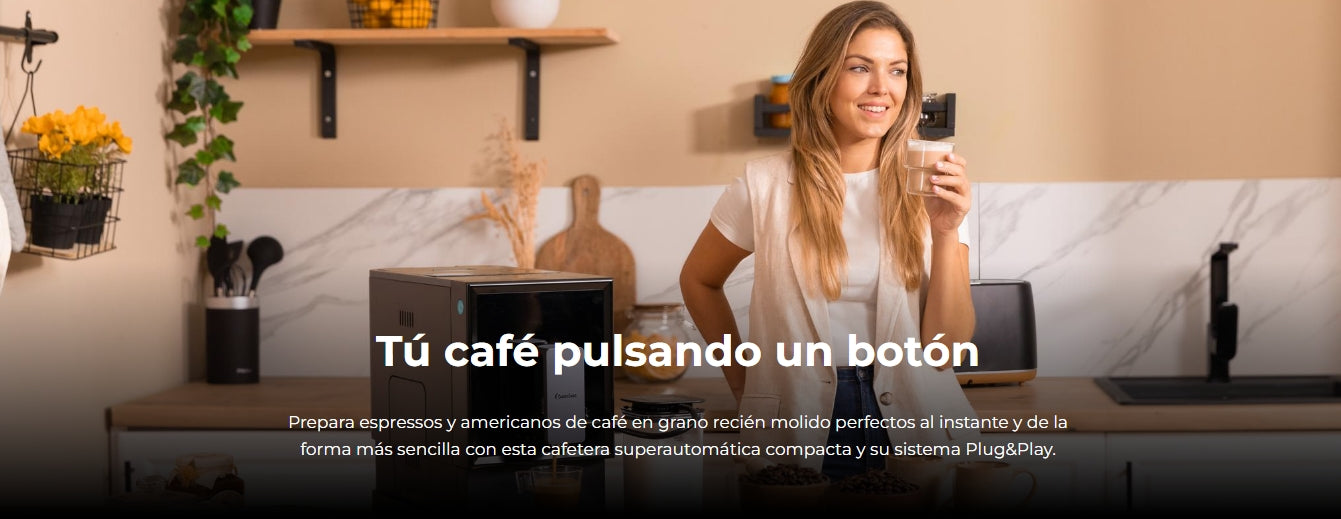 - La cafetera superautomática compacta prepara espressos y americanos de café en grano recién molido pulsando un botón gracias al sistema Plug&Play.