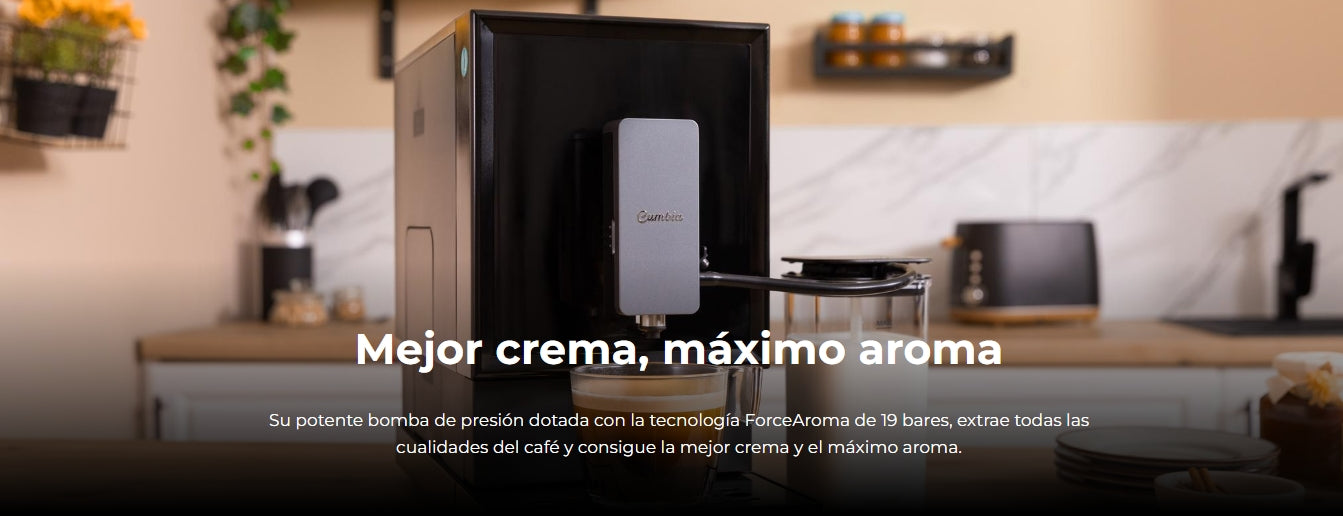 - Bomba de presión de 19 bares para conseguir la mejor crema y el máximo aroma en cada café.